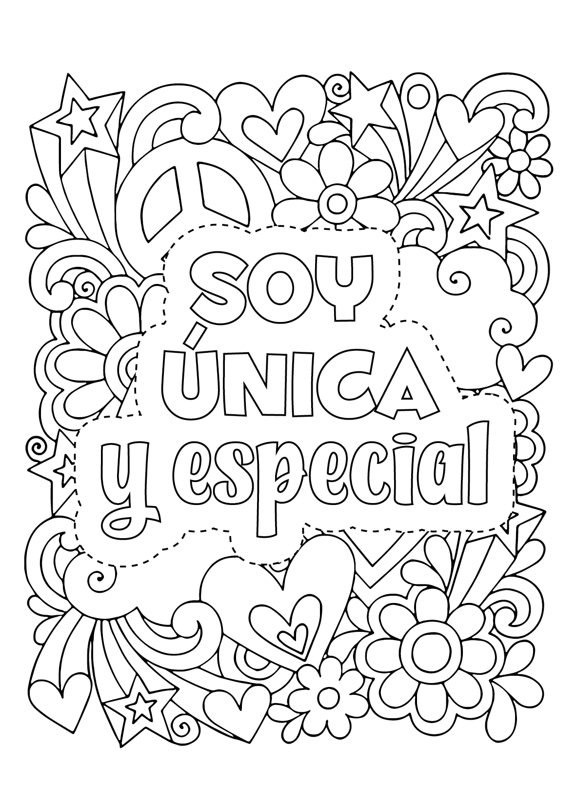 Hermosos y variados diseños con frases positivas para colorear. Cada pagina esta pensada para poderse recortar y enmarcar.