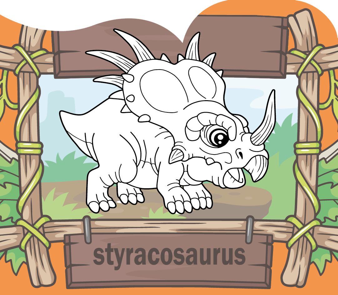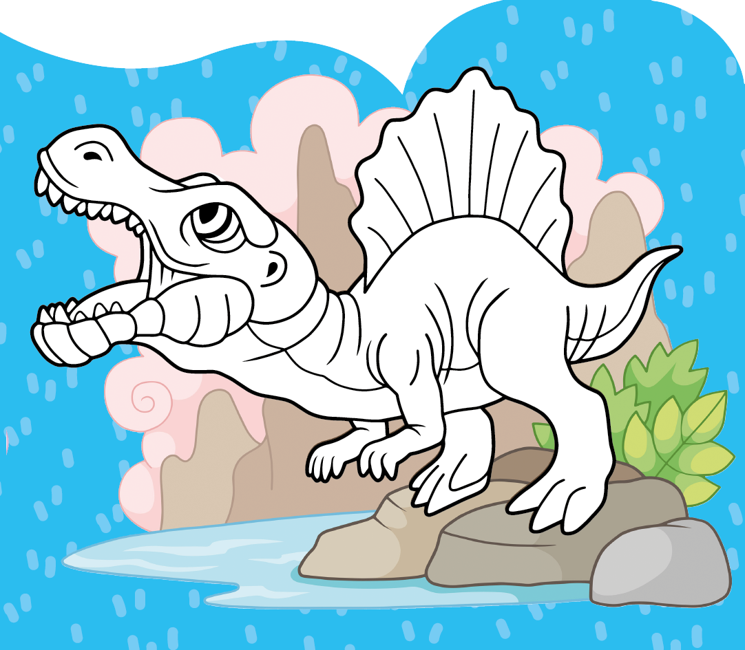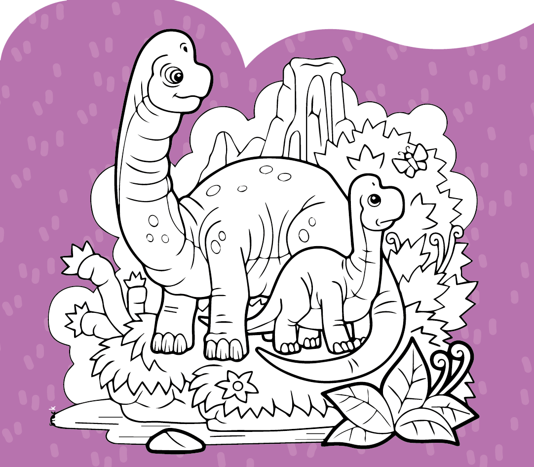 Originales diseños de dinosaurios y paisajes prehistóricos para colorear.