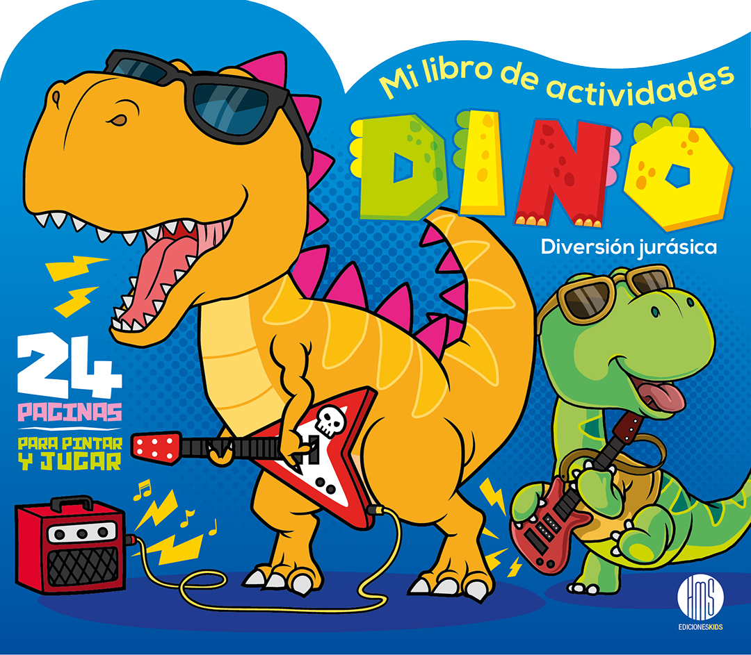 Un libro con divertidos dinosaurios para colorear y actividades para jugar.