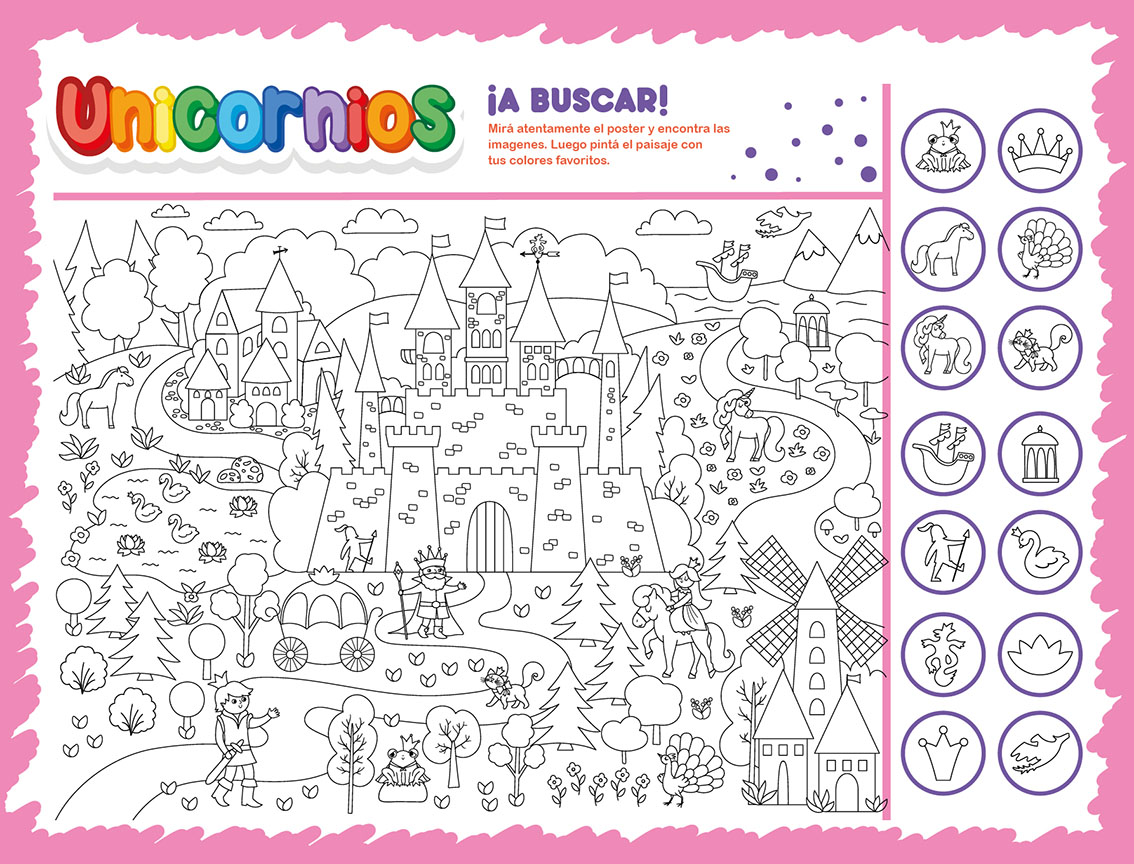 Mágicos diseños para colorear, divertidas actividades para jugar y un súper póster de regalo.