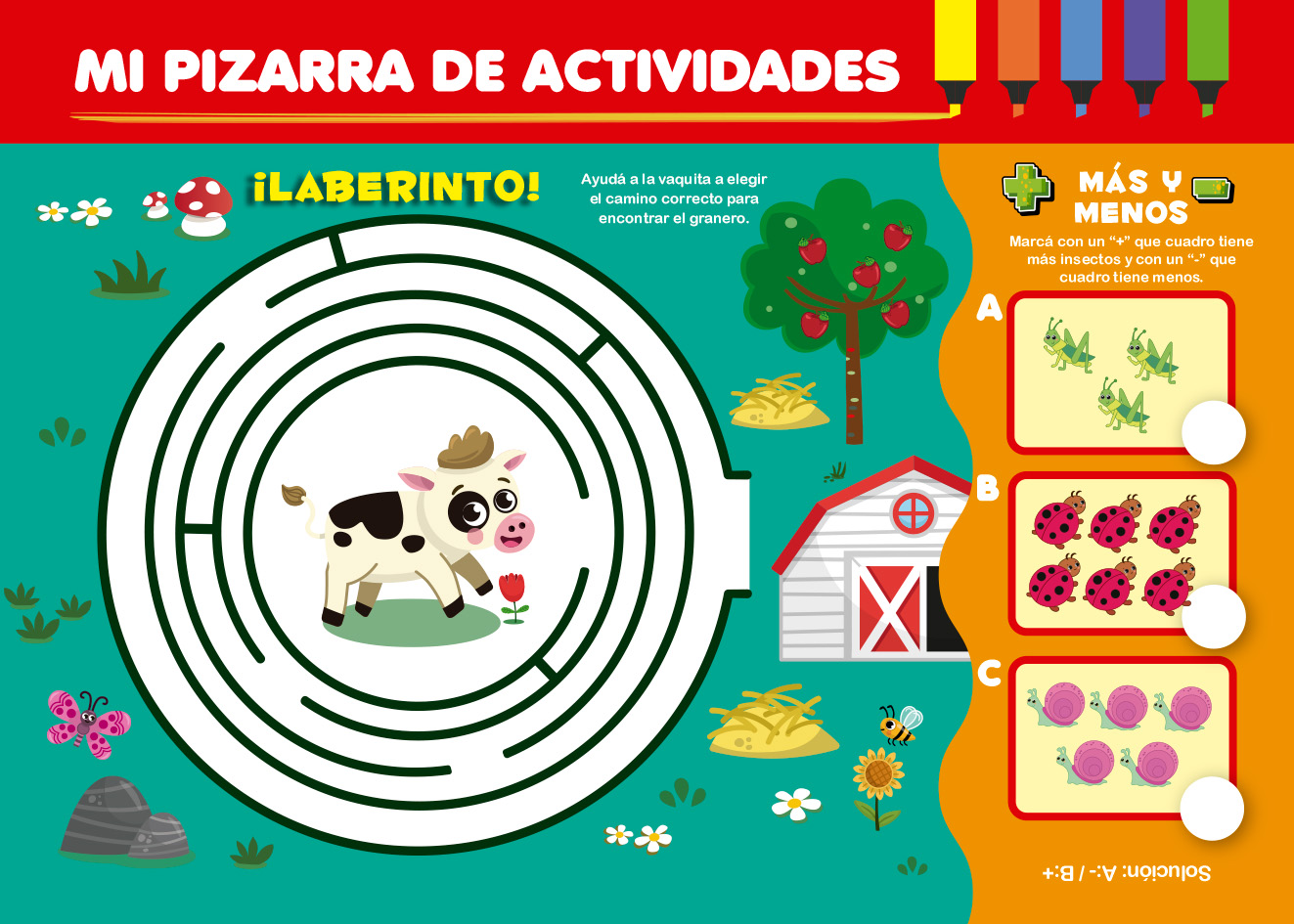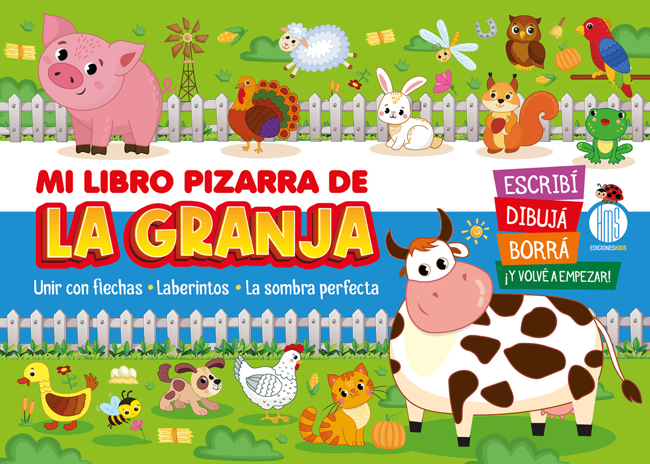 Un libro que combina las actividades preferidas por lo chicos para jugar, con ilustraciones súper divertidas para colorear. Ademas incluye páginas que se pueden completar, borrar, y volver a hacer. ¡Y están todos los animales de la granja que tanto nos gustan!